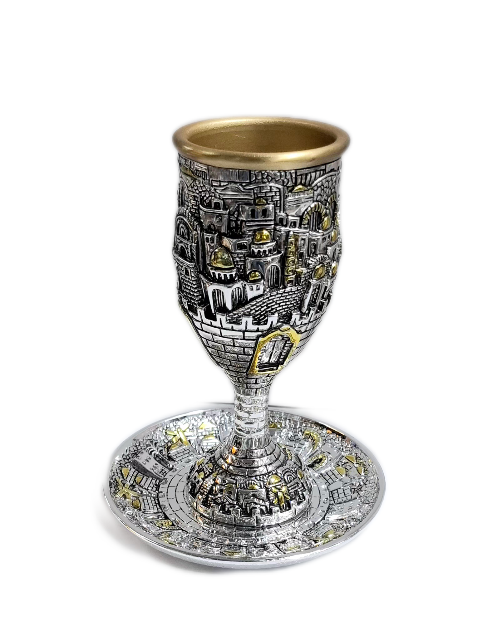 גביע לקידוש דגם ירושלים מהודר ציפוי כסף ואנחנו משחיר