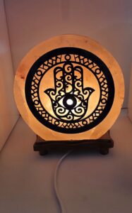 מנורת מלח דגם חמסה סגולות לבריאות,נגד אלרגיות,להקלה בנשימות,מקל על חולי אסטמה,