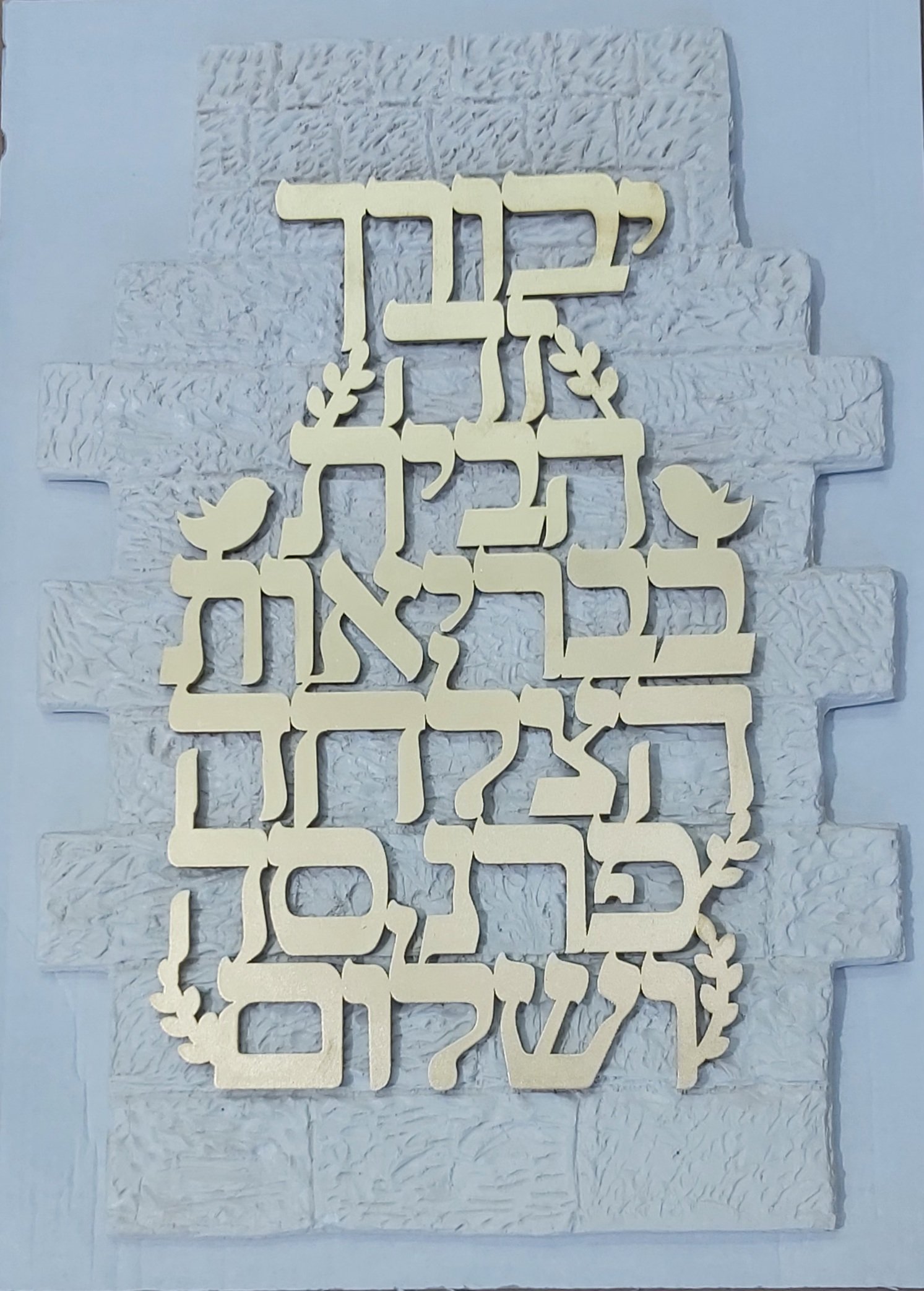 אותיות מרחפות ברכת הבית בשילוב רקע דמוי ה”כותל”