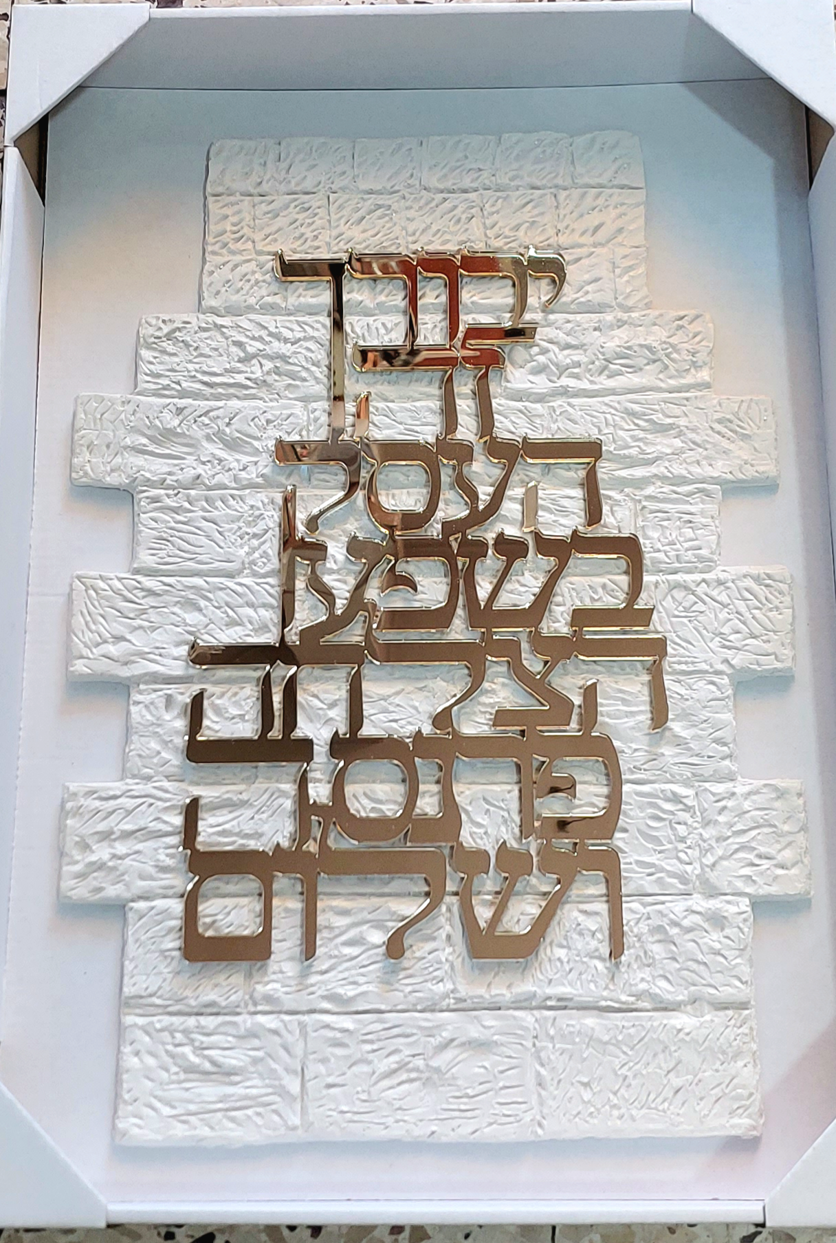 אותיות מרחפות ברכת העסק בשילוב רקע דמוי ”כותל”