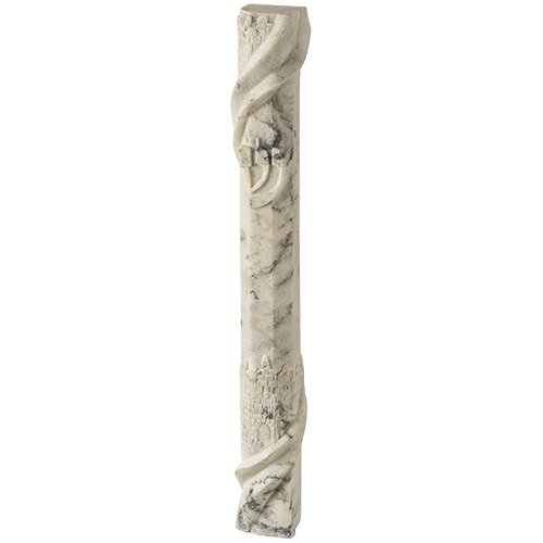 בית מזוזה פולימר בטון "ירושלים" מתאים לקלף 25 ס"מ שיש לבן