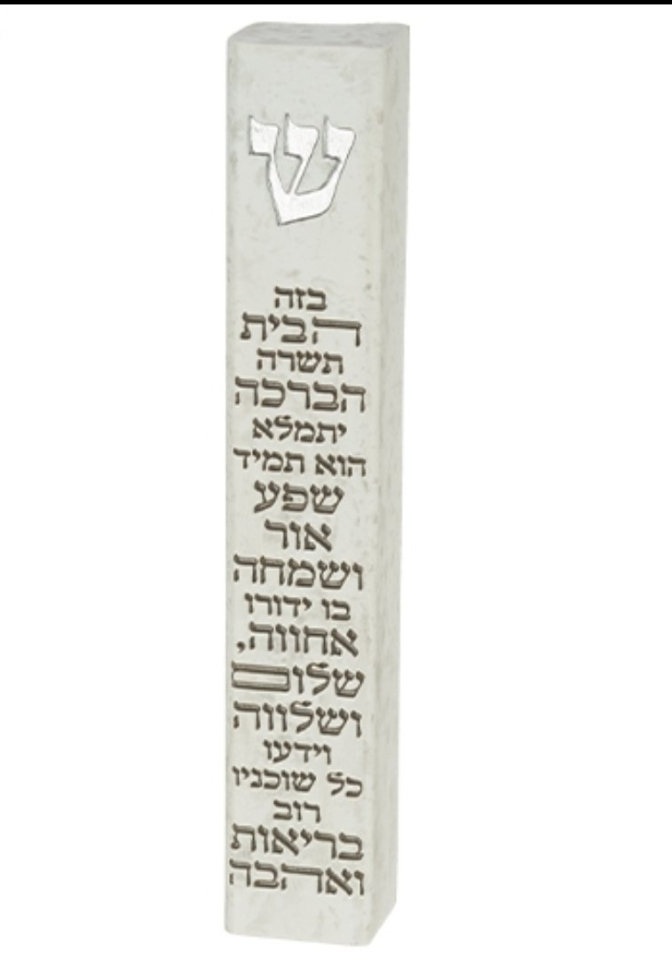 בית מזוזה פולימר בטון צבע לבן עם ברכת הבית לקלף עד-15 ס"מ