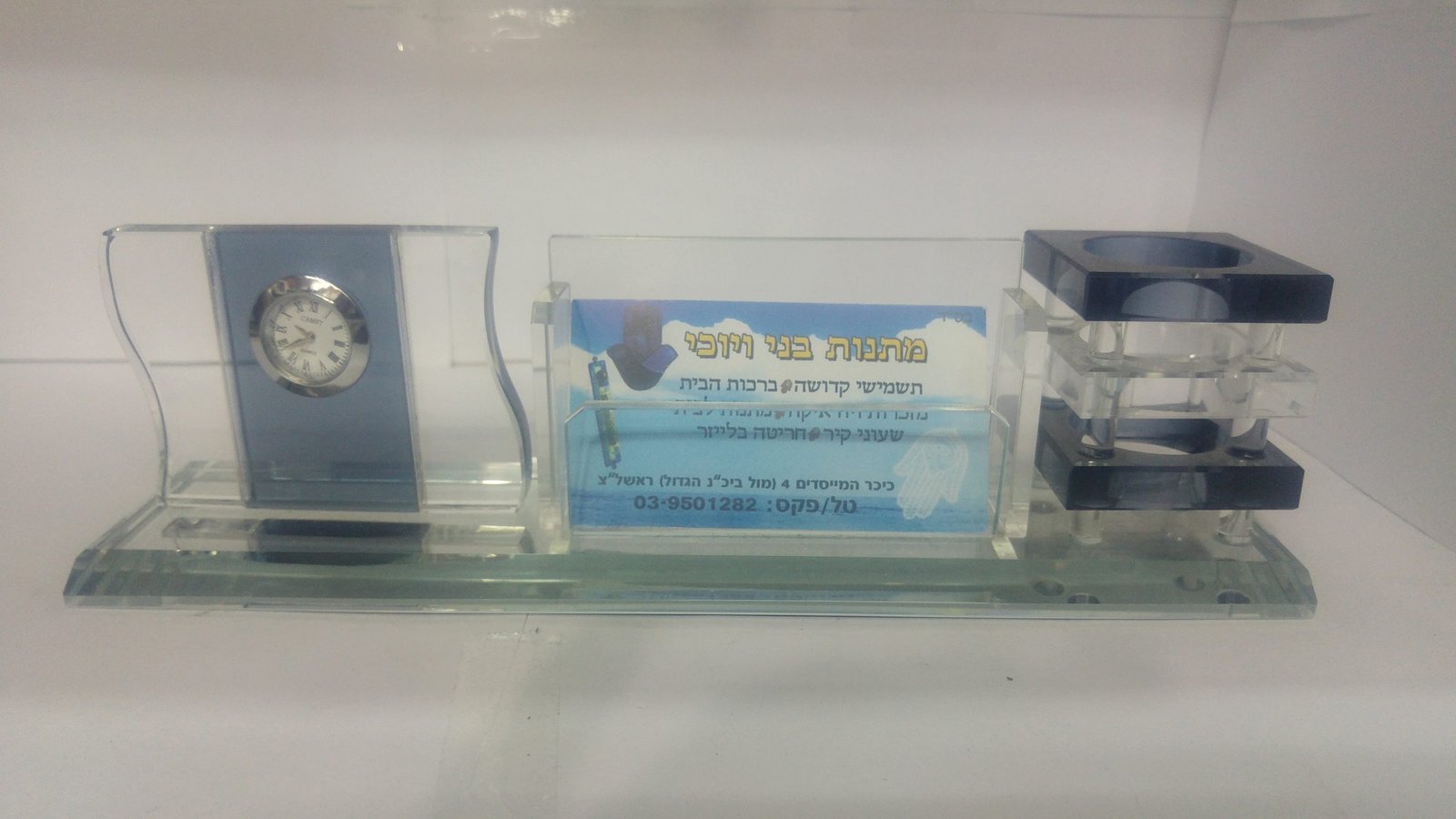 מעמד לעטים וכרטיסי ביקור עם שעון