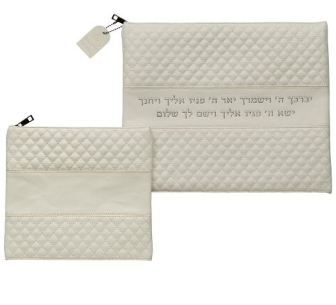 סט טלית תפילין דמוי עור לבן
