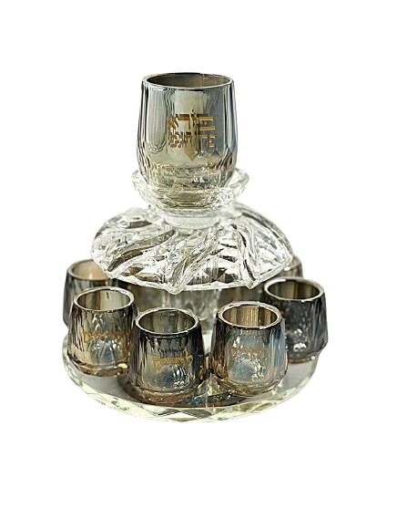 סט מזיגה ליין קריסטל מוזהב 8 כוסות מסתובב,