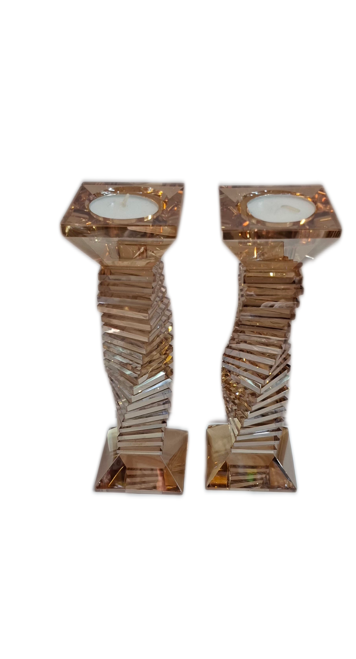 פמוטי שבת מעוצבים בצבע ענבר מהודרים קריסטל