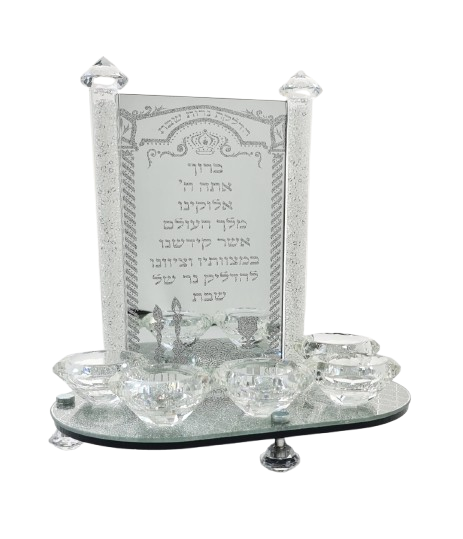 פמוטי שבת 5 קנים קריסטל עם הברכה