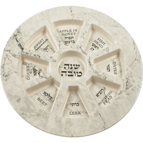 צלחת "במבוק טבעי" מהודרת לראש השנה דגם "שיש"