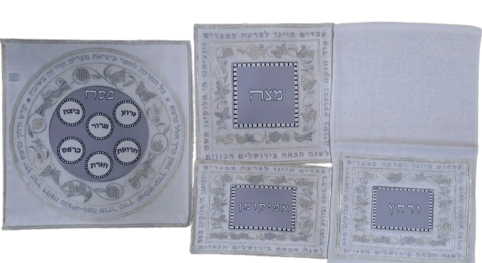 הכולל:כיסוי לאפיקומן,מגבת,כיסוי למצות עם 3 תאים למצות וכיסוי מגש מצה.